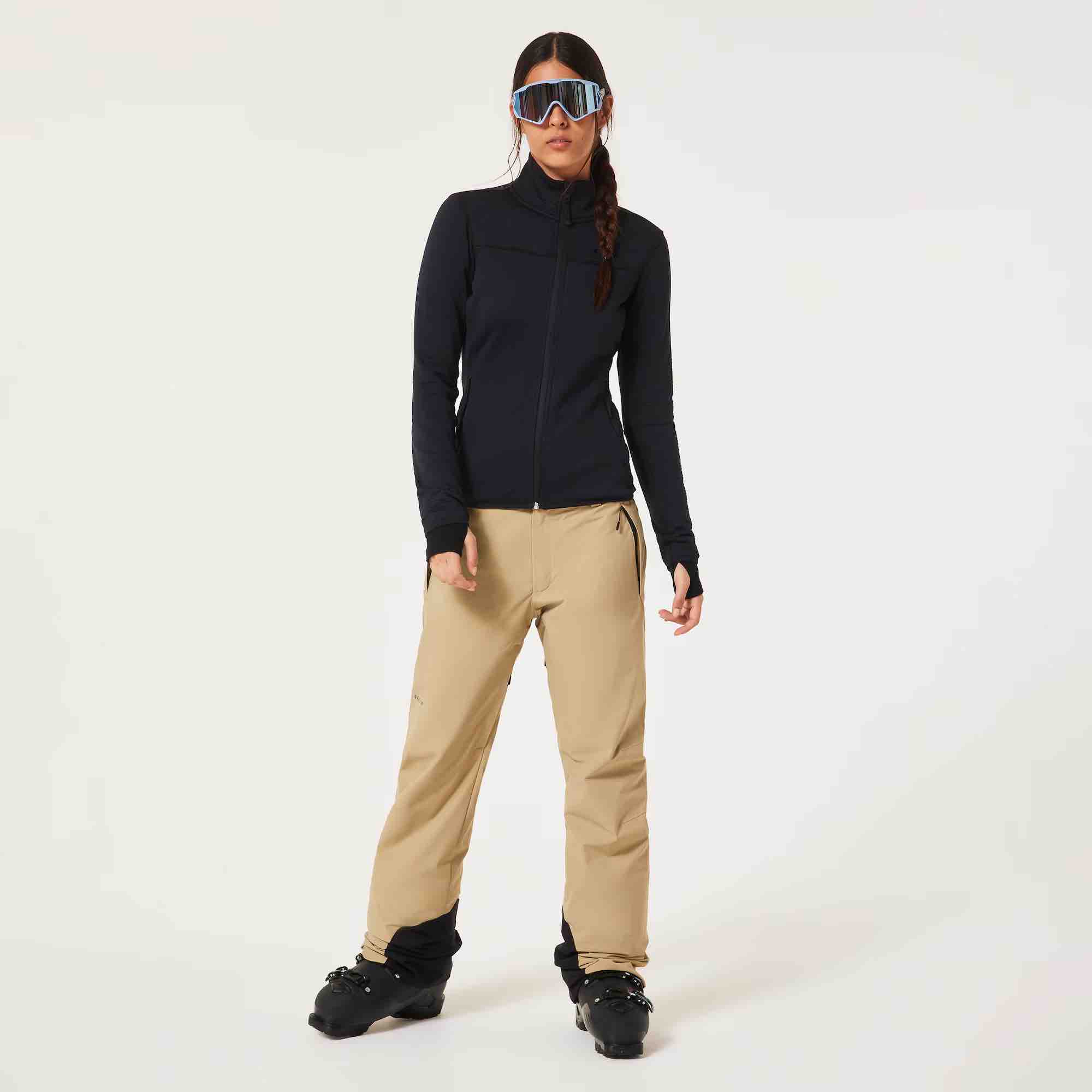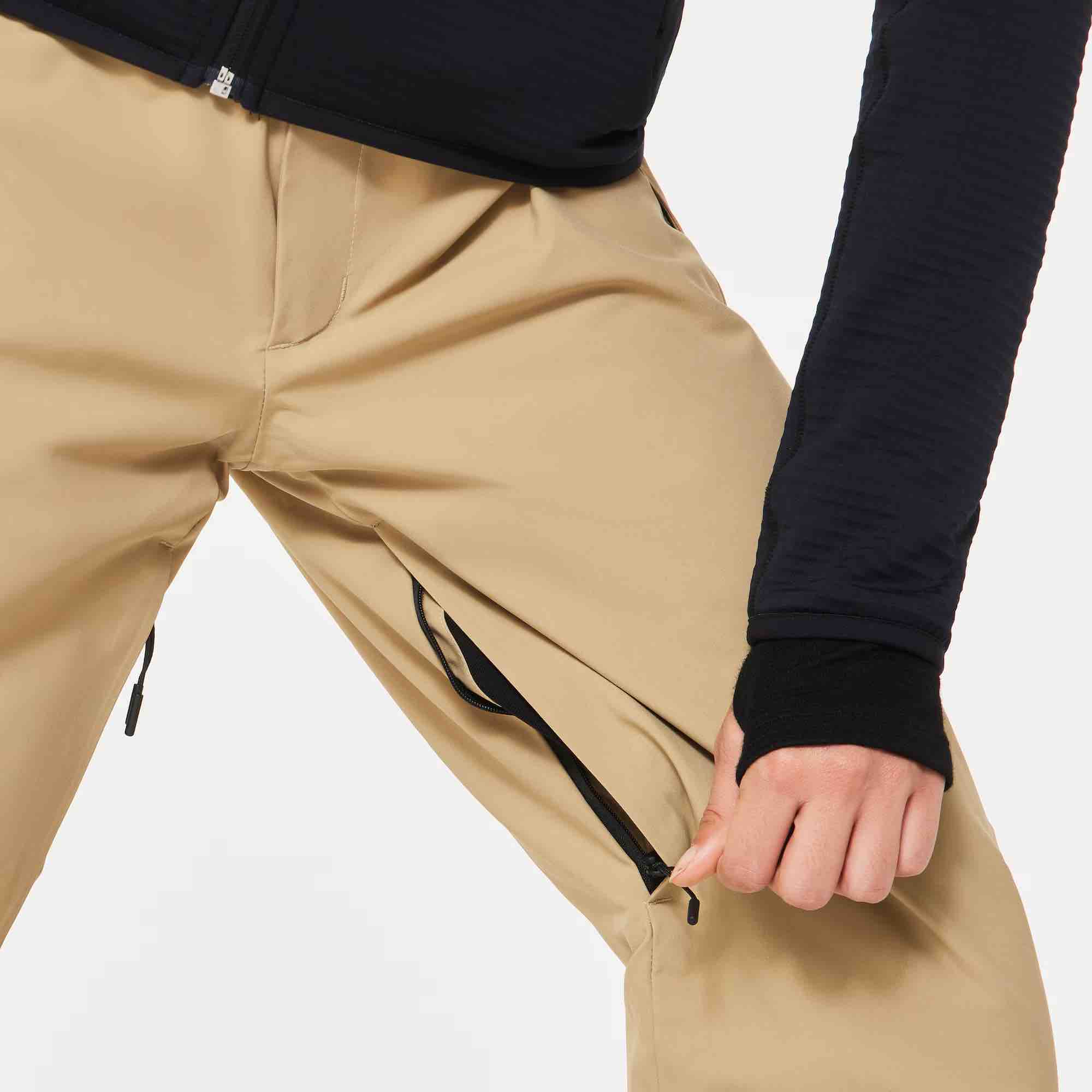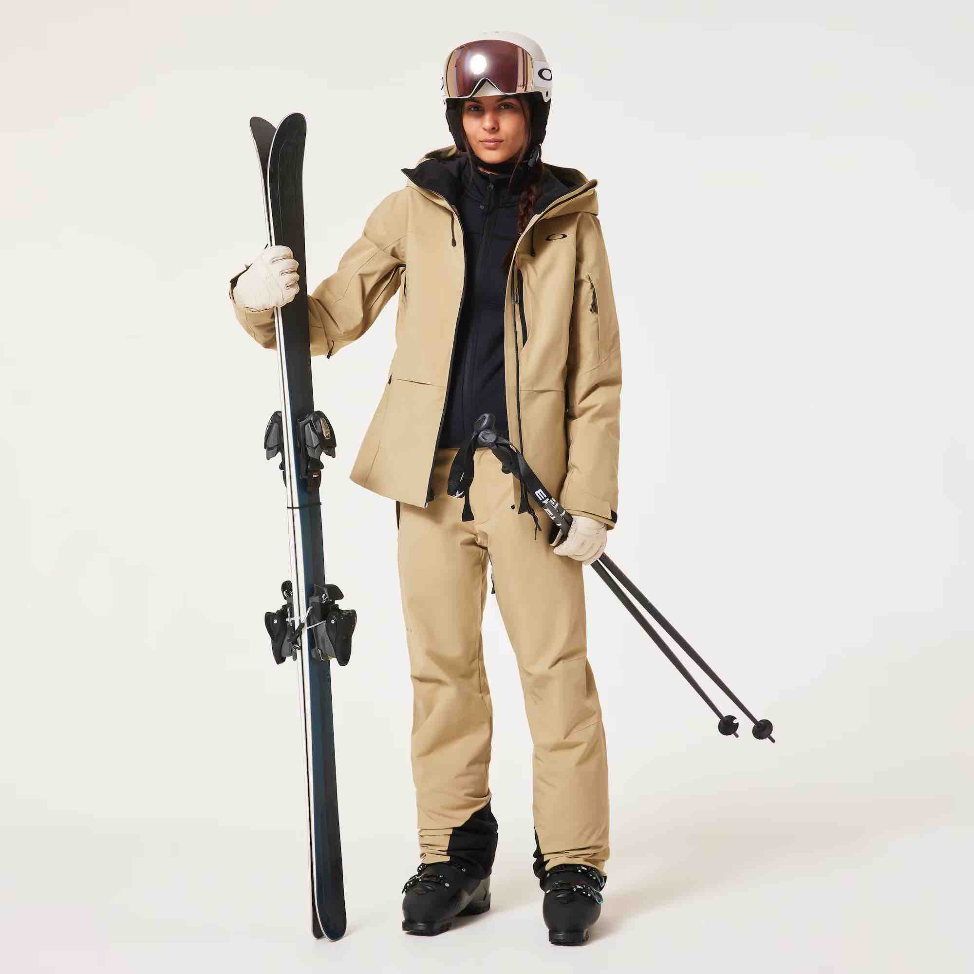 Designed for durability, abrasion-resistant kick panels and inner boot gaiters protect against wear and snow ingress. Two zippered hand pockets provide secure storage for small essentials, while Oakley logos front and back add a signature performance touch.