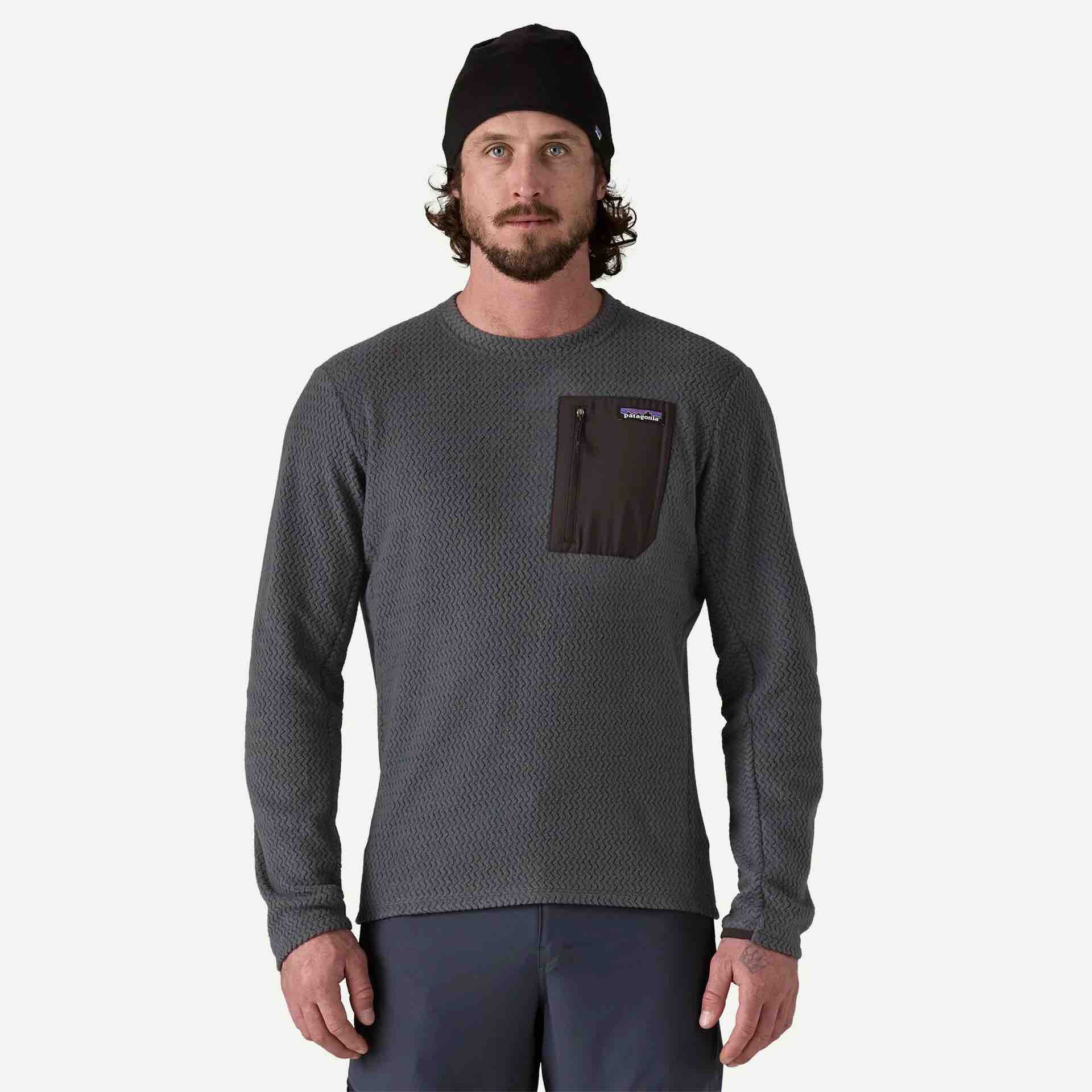 Patagonia R1 Air Men’s Crew Fleece. The R1® Air Crew is a lightweight, highly breathable and quick-drying technical fleece for cool conditions. The classic crewneck silhouette and regular fit is easy to layer or stuff into your pack, with 100% recycled polyester fabric for comfort on the move. Made in a Fair Trade Certified™ factory.