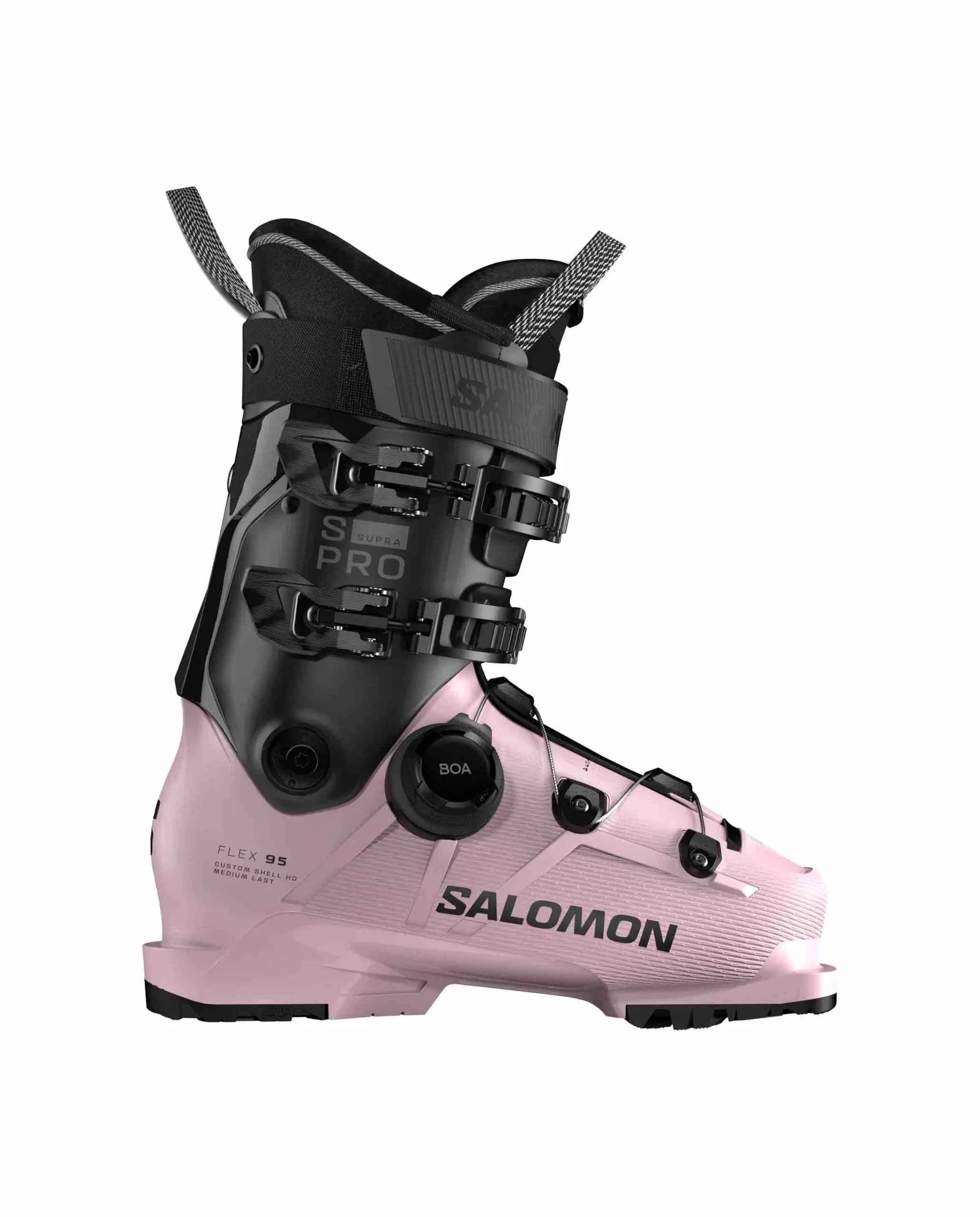 Salomon S/Pro Supra BOA 95 Women’s Ski Boot.Designed for women looking for an easy way to adjust foothold and performance throughout the day, Salomon’s Supra BOA® 95 challenges traditional boot constructions to give you a new standard of perfect fit. Featuring the BOA® Fit System, it offers more consistent foot-wrapping for more comfort and control on the slopes.